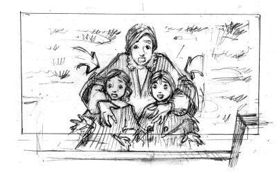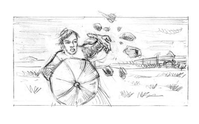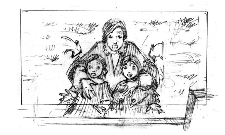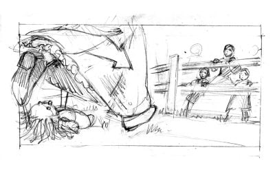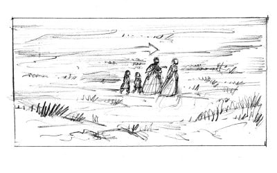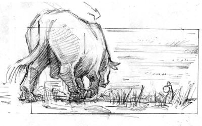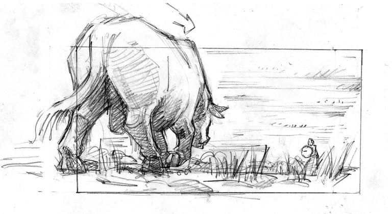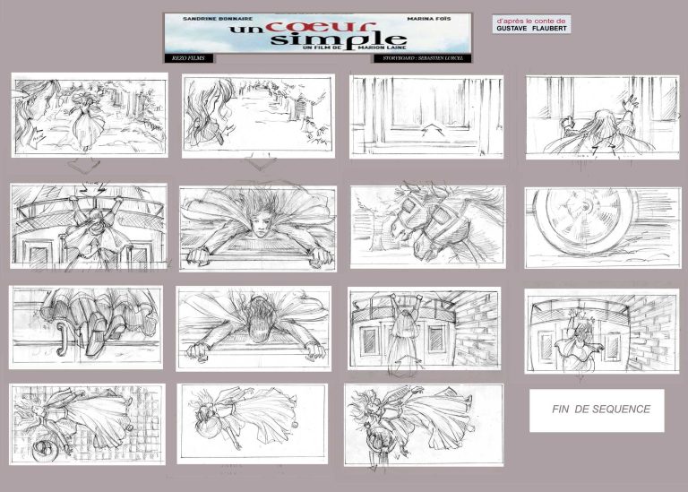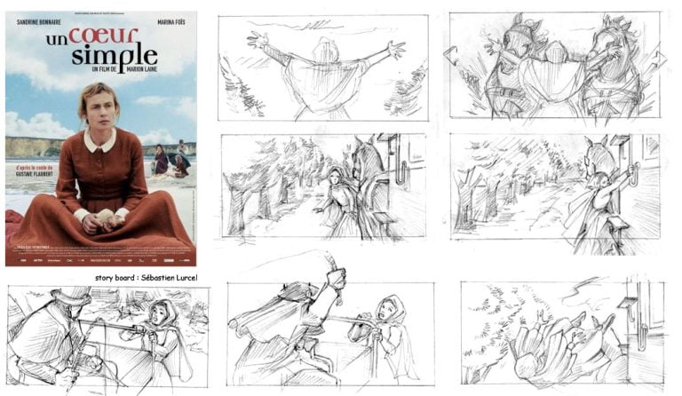 J’y ai storyboardé deux séquences qui nécessitaient des préparations spécifiques : l’une incluant un   taureau censé foncer sur l’actrice principale (Sandrine Bonnaire), l’autre une éventuelle cascade d’une chute de calèche et un travail d’étalonnage particulier. Les indications de mise en scène de Marion Laine étaient d’une grande précision.