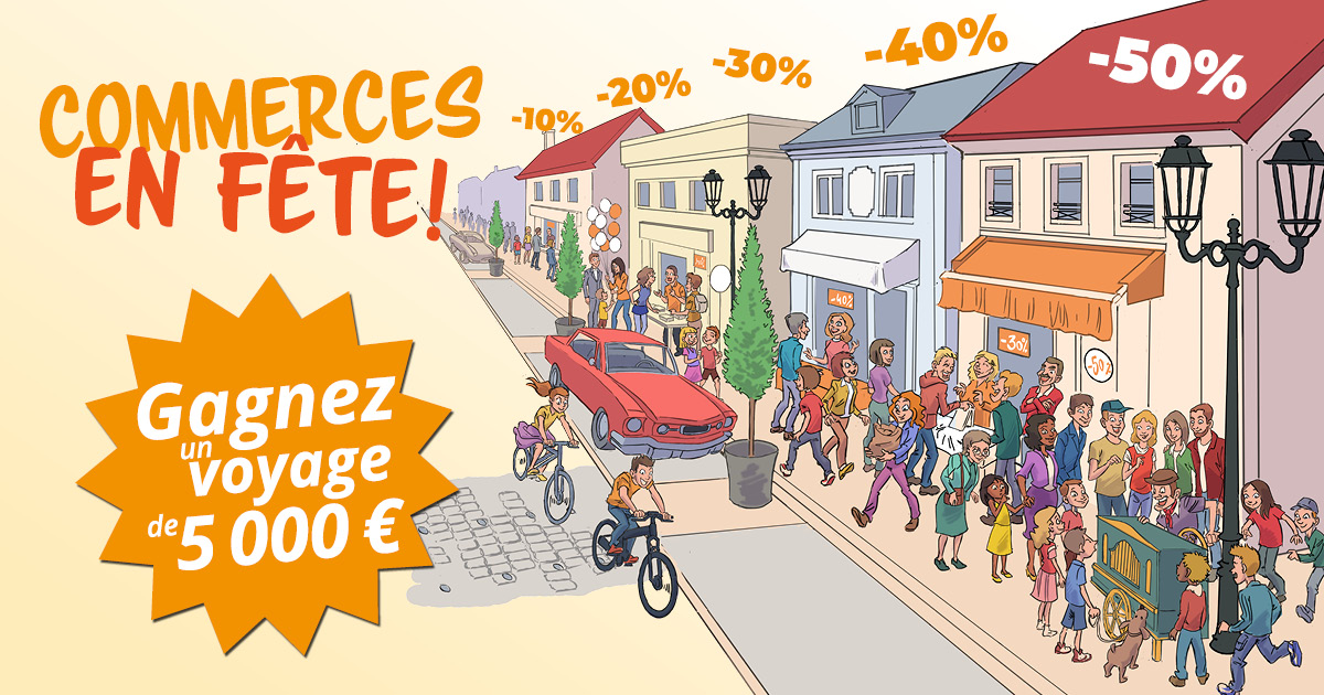 Illustration pour flyers, affiches, bandeaux bus, magazine pour la ville de Montgeron utilisées pour différentes opérations commerciales de la ville depuis 2019.