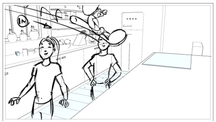 Petite note du storyboarder : Entre animation et réalités du tournage, les évolutions du storyboard aux épisodes finalisés illustrent bien les complexités de la réalisation.