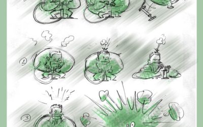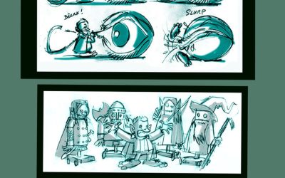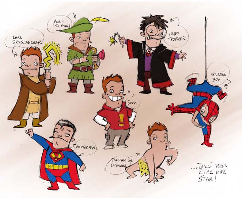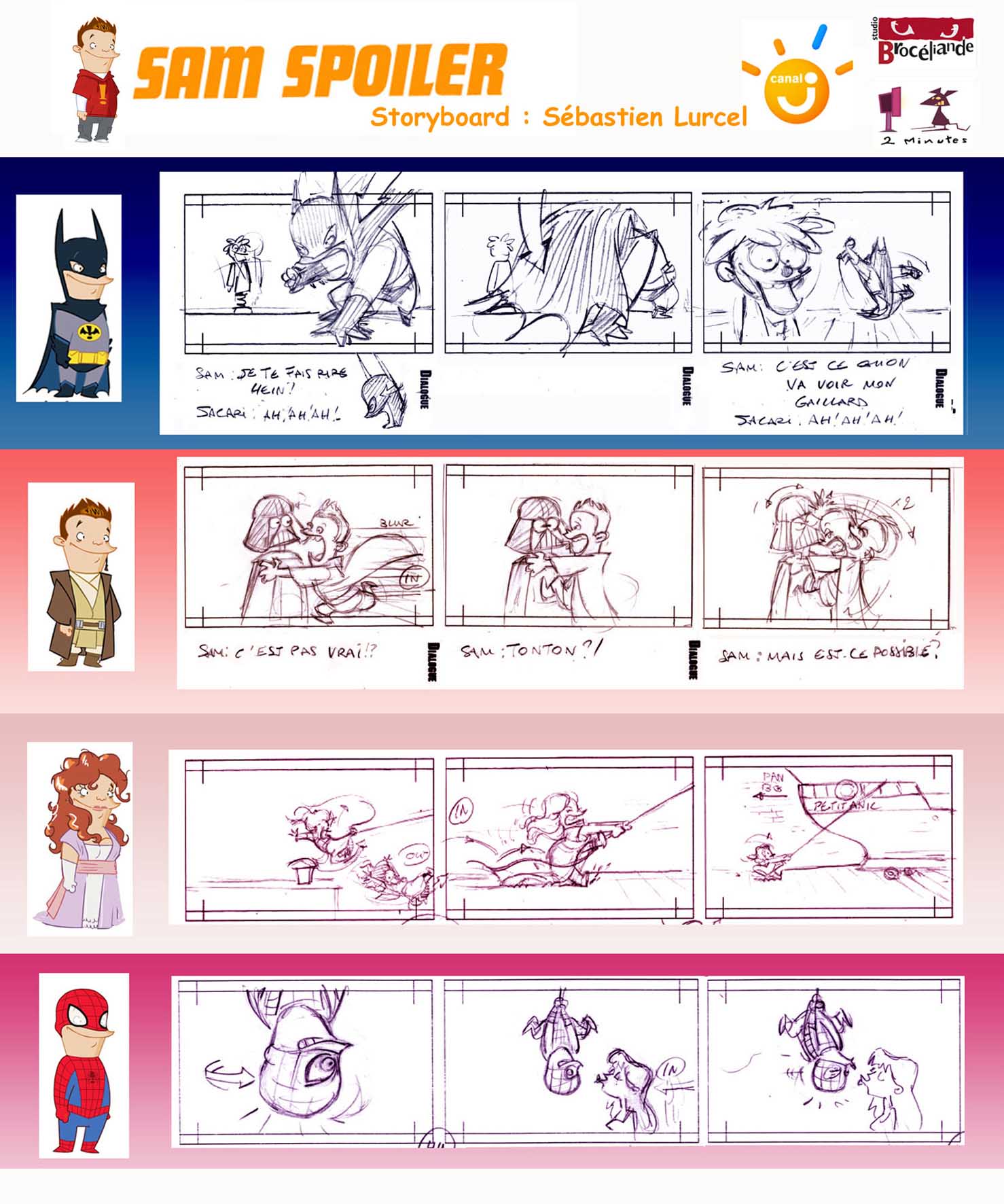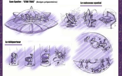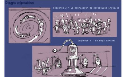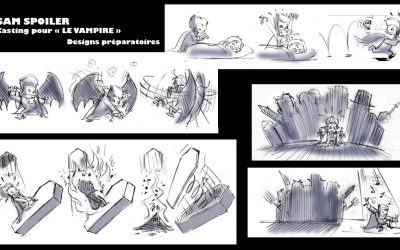 Je partage avec plaisir un aperçu de mon travail sur cette production où j’ai eu l’opportunité d’être à la fois co auteur, co designer et Storyboarder. Une série « rigolote », coproduite par 2 Minutes Angoulême et Studio Brocélliande : 20 épisodes d’1mn 15 crées en collaboration d’écriture avec Fabrice Ziolkowski et réalisée par Josselin Ronsse. Quelques planches d’études des recherches préparatoires, deux animatiques et un lien vers deux épisodes pour survoler cette série dont on aurait bien aimé voir une saison 2. C’était encore l’époque du « papier-crayon » , même si les technologies évoluent ça conserve son charme. Pour voir deux extraits de castings de Sam , rendez vous sur cette page portfolio de « 2 minutes animation ».