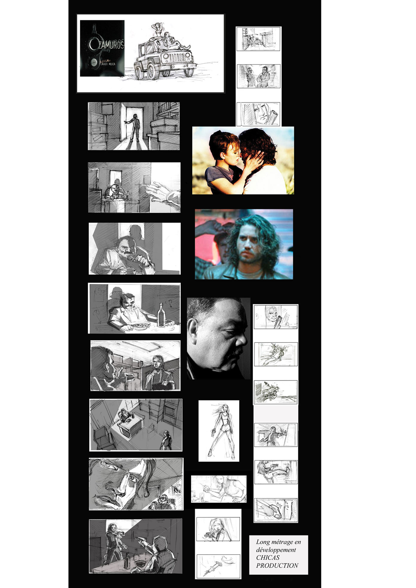 Je m’étais à l’époque investi dans un travail  de storyboard  dont je présente ici quelques dessins et mood-board.